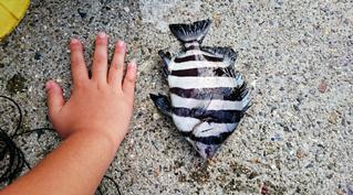 捕まえた小魚を確認するとサッパ!すごい数だ。があっという間にサッパタイム終了。